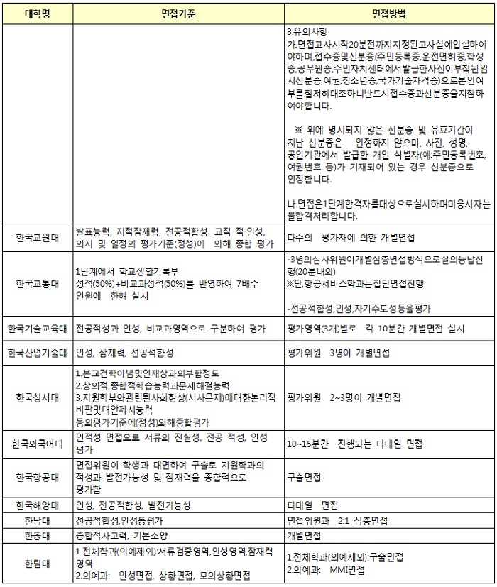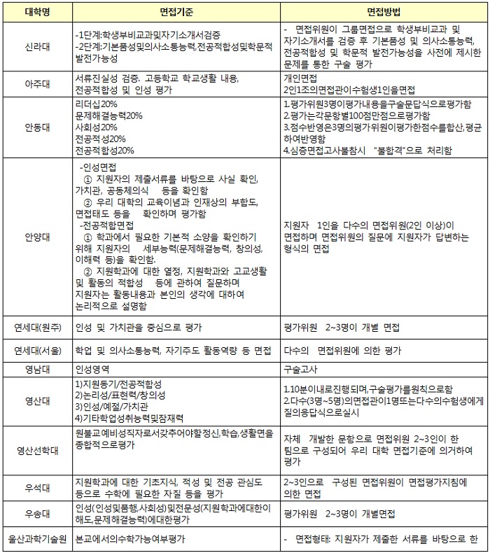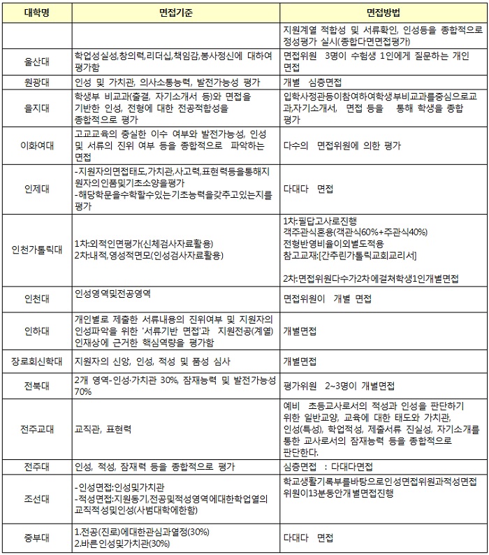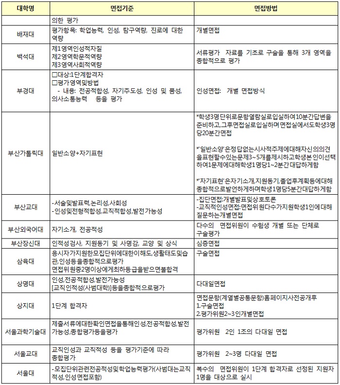 Q: 그렇다면 학생부종합전형을 실시하는 대학에서 면접을 어떻게 실시하는지 대략적인 기준이나 방법 등을 알 수 있는 방법은 없을까요?