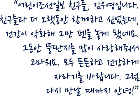 내가 처음 등장할 때 신문의 제호는 '소년조선일보'였어. 나와 생일이 같은 친구들은 벌써 나이가 서른 다 된 어른이겠지? 난 예나 지금이나 초등학생인데 말이야! 나는 오늘(1일)까지 총 8556번 신문에 등장했어. 서울 광화문의 조선일보 정보자료실에서 먼지가 뽀얗게 쌓인 1화〈사진〉를 찾아보니 뭉클하더라. 왠지 지금보다 젊었던 것 같아! -