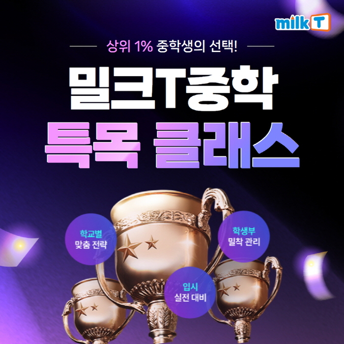밀크T중학 입시 전문가는 “천재교육이 보유한 풍부한 학습 데이터를 기반으로 입시 전문 컨설턴트가 1:1 밀착 관리를 진행하고 있다”며 “목표 학교 설정부터 입시 전형별 파이널 전략까지 모든 과정을 체계적으로 지원하는 만큼, 학생과 학부모 모두에게 실질적인 도움이 될 것”이라고 전했다.