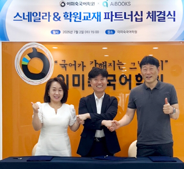 에듀테크 플랫폼 ‘스네일라’를 운영하는 ㈜에이아이북스가 충청권 최대 국어 전문 학원인 이미숙 국어학원과 새로운 교육 모델 확장을 위한 전략적 파트너십을 체결했다고 3일 밝혔다.
