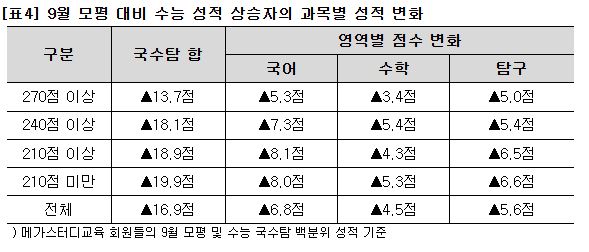 ◇ 성적 상승자는 국수탐 백분위합 기준 약 17점 올라