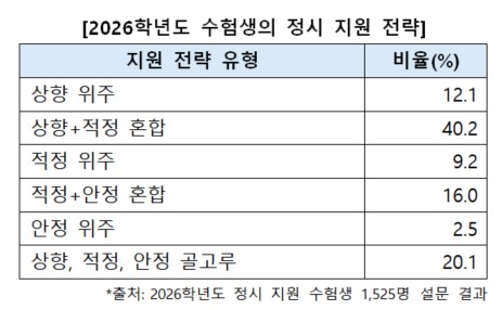 - ‘상향+적정 혼합(40.2%)’ 전략 최다… 안정 위주 지원은 2.5% 불과