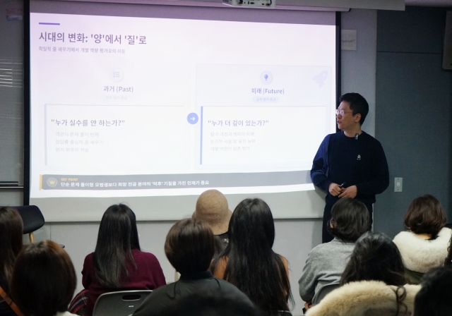 설명회는 총 3부로 나뉘어 진행됐다. 1부에서는 대학입시 전문가 이병훈 소장이 변화하는 교육제도와 더불어 대입 전략에 대해 안내했다. AI와 교실의 변화, 고교학점제 등 학생들과 학부모가 궁금해할 만한 교육계 트렌드에 대해 이야기를 나눴다.