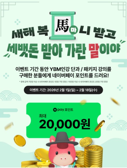 - YBM인강, 설 연휴 맞아 단과 및 패키지 강의 구매 고객 대상 ‘네이버페이 포인트’ 증정