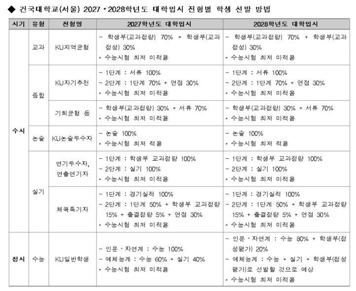 [유성룡의 입시포인트] 건국대학교(서울) 2028학년도 입학전형 주요사항