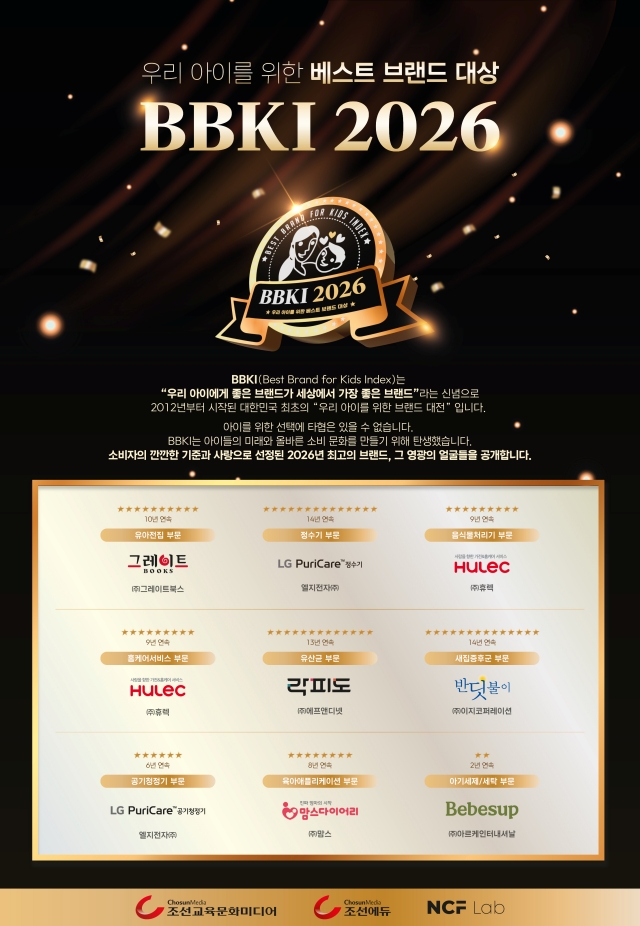 대한민국 학부모들이 직접 선택한 ‘2026 우리 아이를 위한 베스트 브랜드 대상(이하 BBKI 2026)’ 수상 브랜드가 공개됐다.