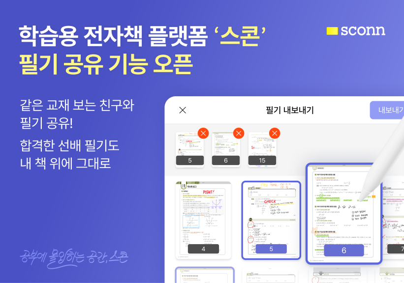 학습용 전자책 플랫폼 ‘스콘(SCONN)’이 필기 공유 기능을 새롭게 선보인다. 같은 교재를 보는 학습자들과 필기를 공유함으로써 많은 양의 서적을 보다 쉽고 효율적으로 공부할 수 있게 될 전망이다.